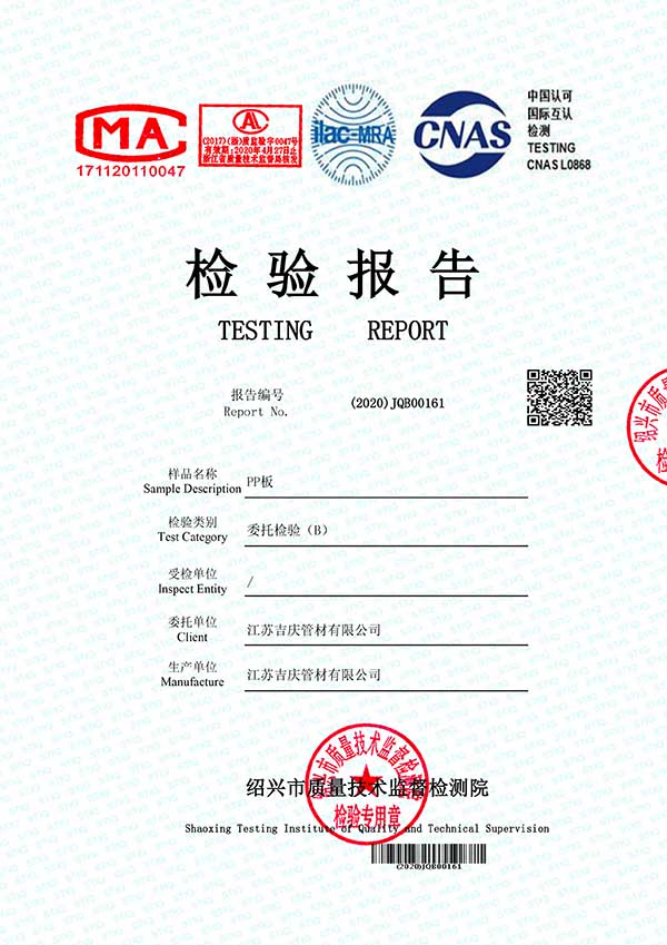 江蘇吉慶管材集團有限公司創(chuàng)辦于2010年2月,是pp管,pp管材,pp管件,pp風(fēng)管,frpp管,frpp管材,pph管,pph管材,pph管件,pph風(fēng)管,pvdf管,pvdf管材,pp儲罐,pp板材的專業(yè)化生產(chǎn)企業(yè)。公司占地30余畝,擁有各類資產(chǎn)8000余萬元,專業(yè)技術(shù)人員20余人,管材生產(chǎn)線10條,管件生產(chǎn)線11條,具備了10000余噸各類防腐塑料制品的年生產(chǎn)能力。公司通過了ISO9001-2000質(zhì)量體系認(rèn)證,同時被評為AAA信用單位,2018年公司被評為高新技術(shù)企業(yè),此后陸續(xù)取得安全生產(chǎn)管理證書等榮譽。公司位于水上花園城市----江蘇省揚中市八橋鎮(zhèn)永福路18號,交通便捷,可直接導(dǎo)航至公司園區(qū)內(nèi)。公司全體員工將以高度的敬業(yè)精神,嚴(yán)格的質(zhì)量控制理念和科學(xué)的管理方法,及時周到的服務(wù),竭力為我國塑料管道在各領(lǐng)域的推廣和應(yīng)用作出更大的貢獻(xiàn)!